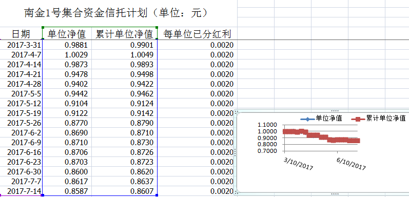 湖南信托-南金1号集合资金信托计划净值披露(2017年7月14日)
