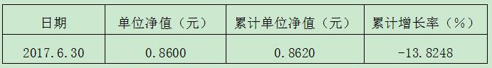 截止2017年6月30日,实现信托财产净值增长为:-13.8248%。
