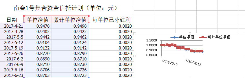 湖南信托-南金1号集合资金信托计划净值披露(2017年6月23日)