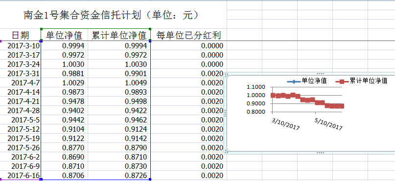湖南信托-南金1号集合资金信托计划净值披露(2017年6月16日)