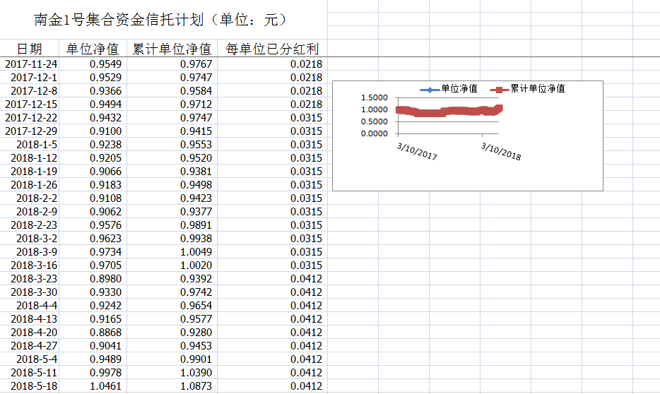湖南信托-南金1号集合资金信托计划净值披露(2018年5月18日)