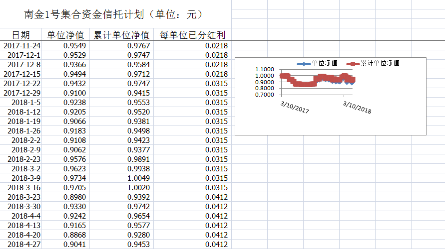 湖南信托-南金1号集合资金信托计划净值披露(2018年4月27日)