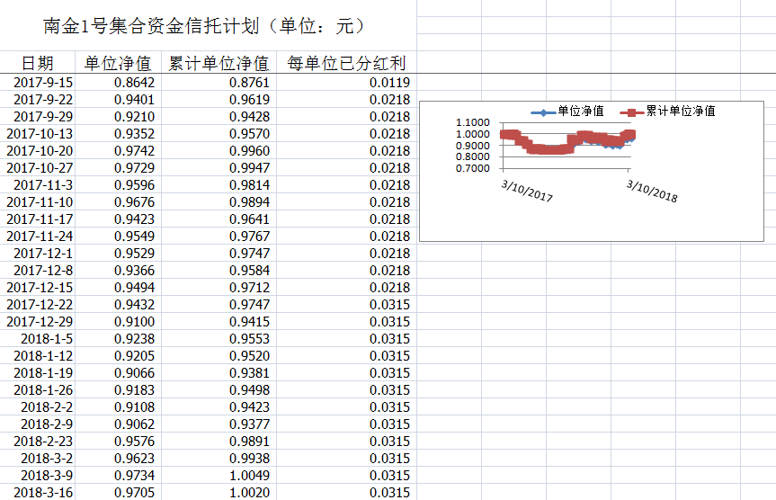 湖南信托-南金1号集合资金信托计划净值披露(2018年3月16日)