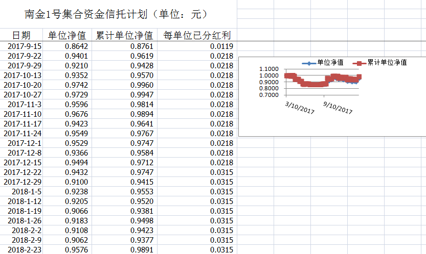 湖南信托-南金1号集合资金信托计划净值披露(2018年2月23日)