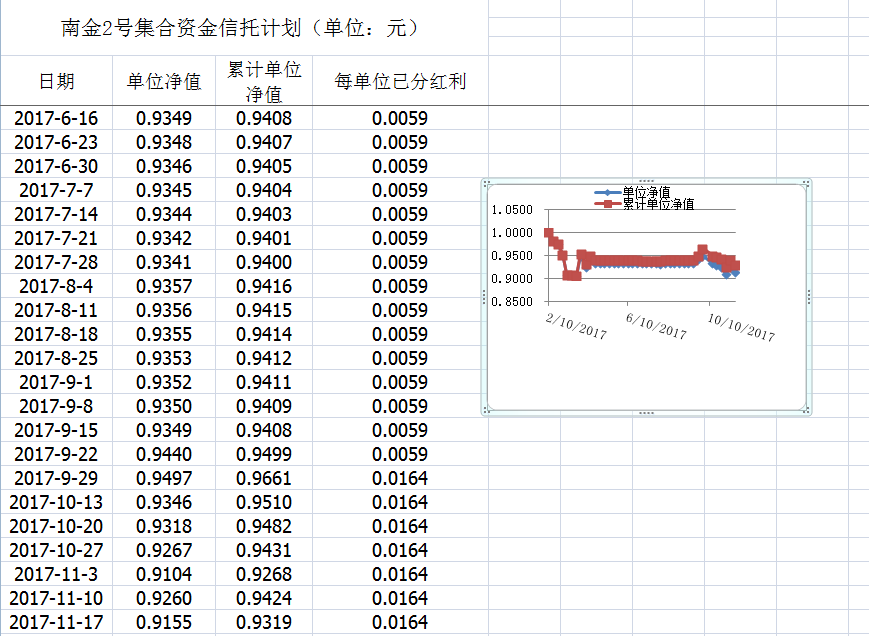 湖南信托-南金2号集合资金信托计划净值披露(2017年11月17日)