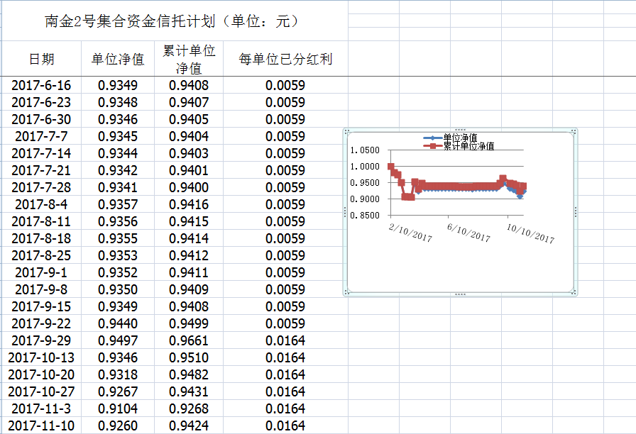 湖南信托-南金2号集合资金信托计划净值披露(2017年11月10日)