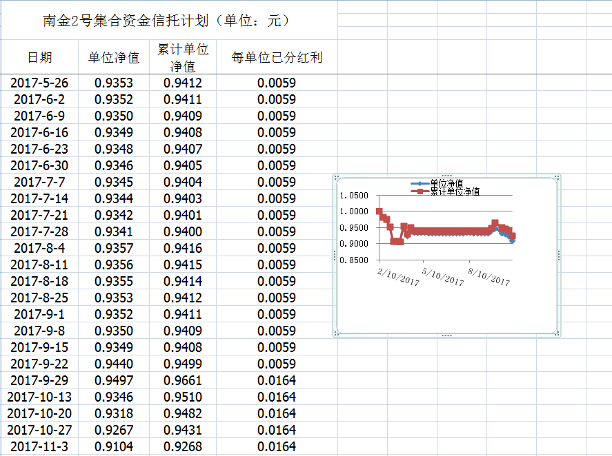湖南信托-南金2号集合资金信托计划净值披露(2017年11月3日)