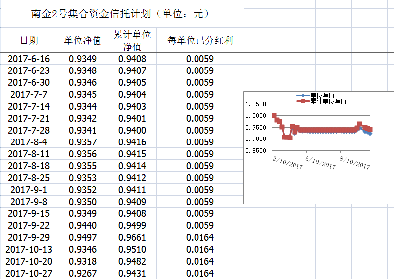 湖南信托-南金2号集合资金信托计划净值披露(2017年10月27日)