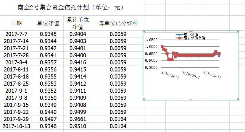 湖南信托-南金2号集合资金信托计划净值披露(2017年10月13日)