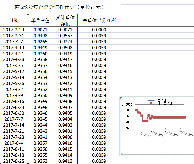 湖南信托-南金2号集合资金信托计划净值披露(2017年8月25日)