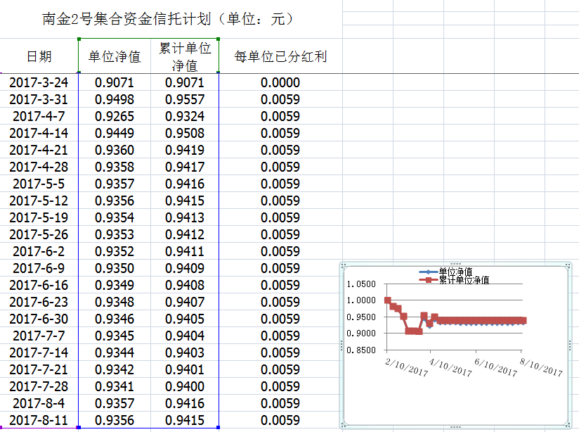 湖南信托-南金2号集合资金信托计划净值披露(2017年8月11日)