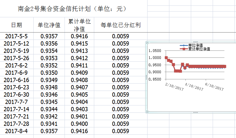 湖南信托-南金2号集合资金信托计划净值披露(2017年8月4日)