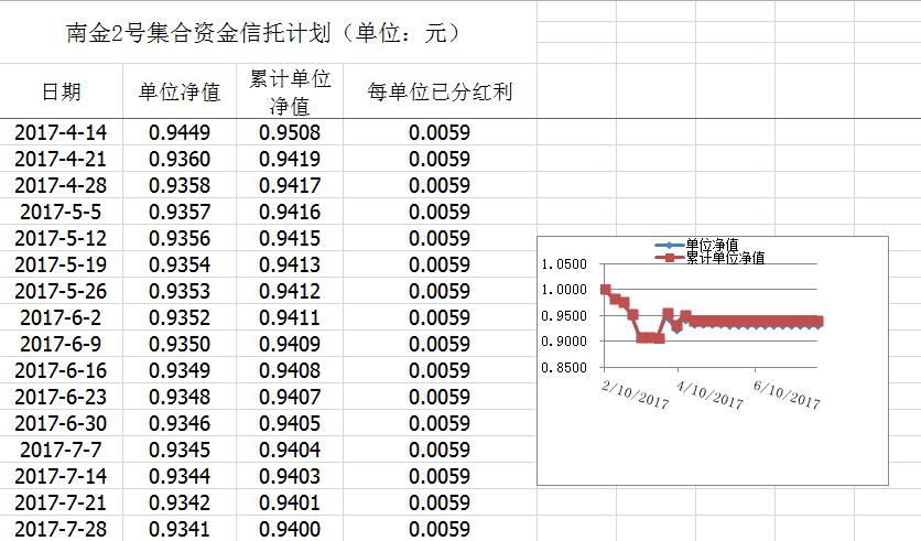 湖南信托-南金2号集合资金信托计划净值披露(2017年7月28日)