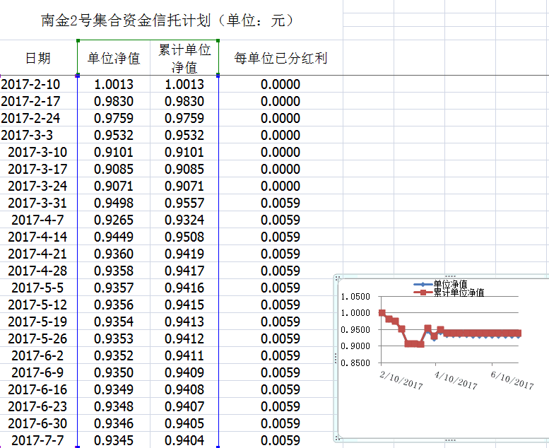 湖南信托-南金2号集合资金信托计划净值披露(2017年7月7号)