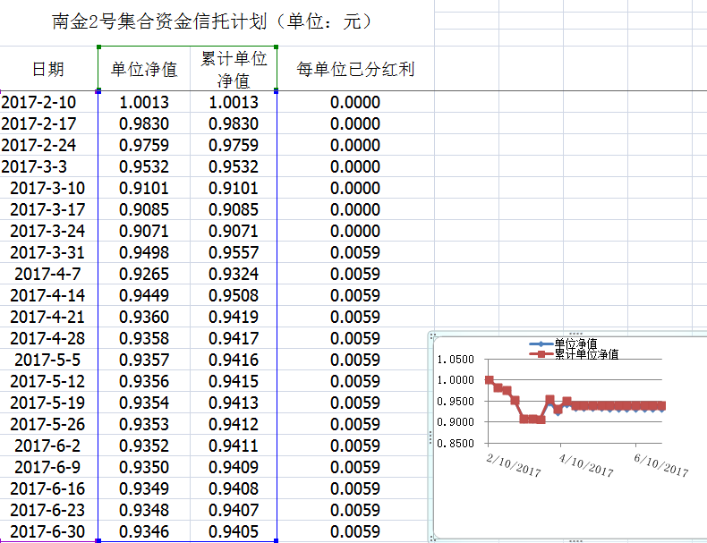 湖南信托-南金2号集合资金信托计划净值披露(2017年6月30日)