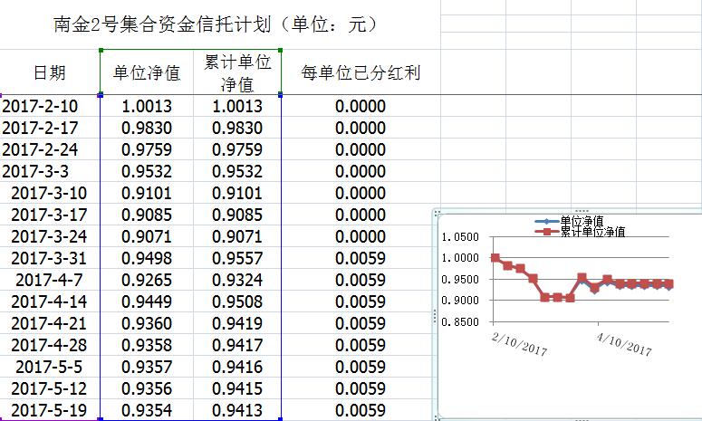 湖南信托-南金2号集合资金信托计划净值披露(2017年5月19日)