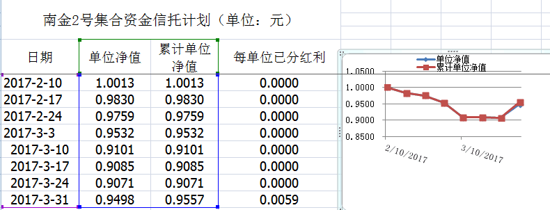 湖南信托-南金2号集合资金信托计划净值披露(2017年3月31日)
