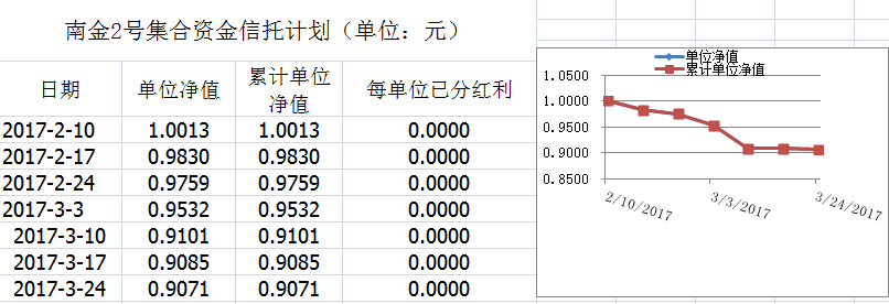 湖南信托-南金2号集合资金信托计划净值披露(2017年3月24日)