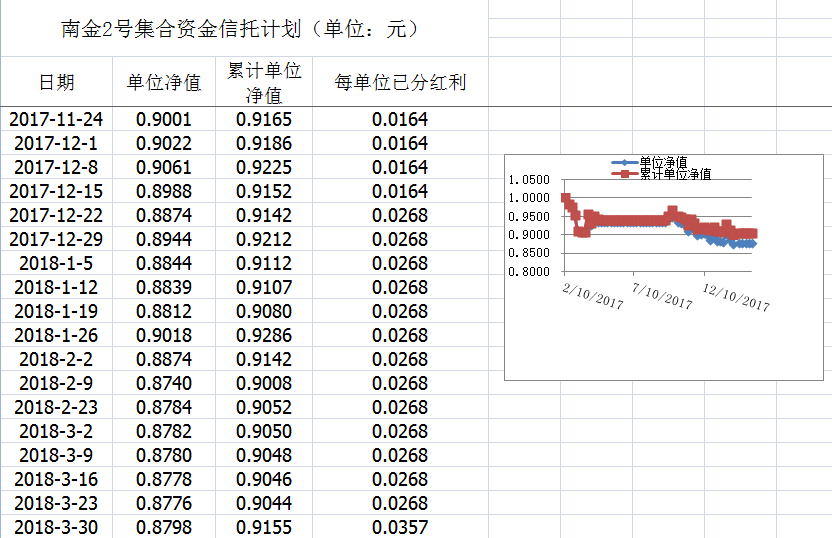 湖南信托-南金2号集合资金信托计划净值披露(2018年3月30日)
