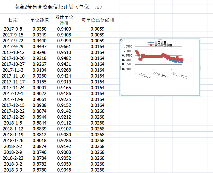 湖南信托-南金2号集合资金信托计划净值披露(2018年3月9日)