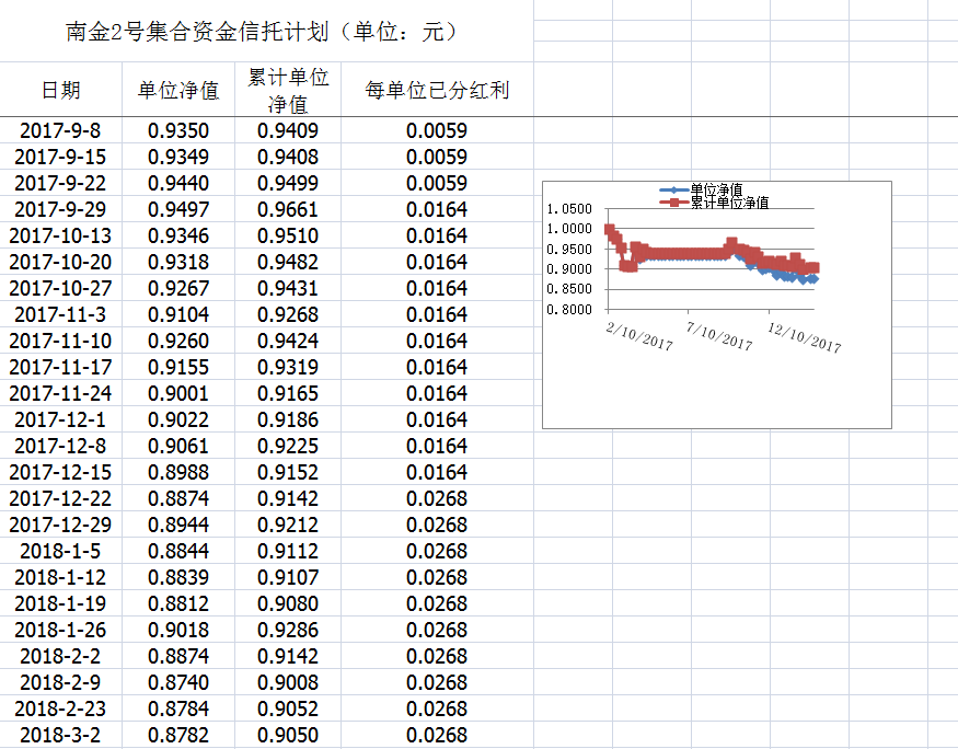 湖南信托-南金2号集合资金信托计划净值披露(2018年3月2日)