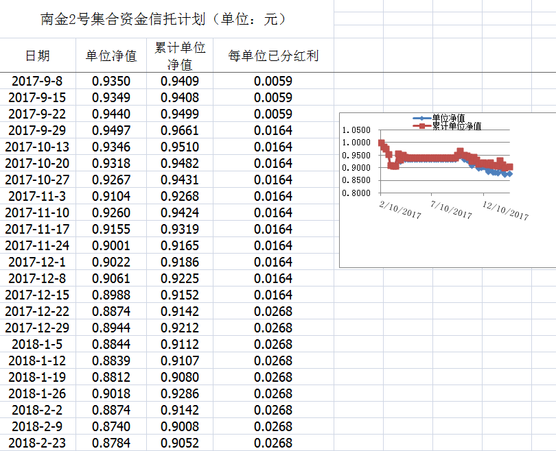湖南信托-南金2号集合资金信托计划净值披露(2018年2月23日)
