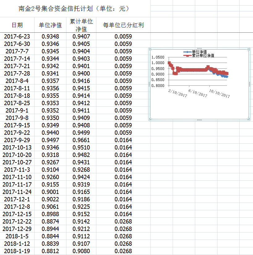 湖南信托-南金2号集合资金信托计划净值披露(2018年1月19日)