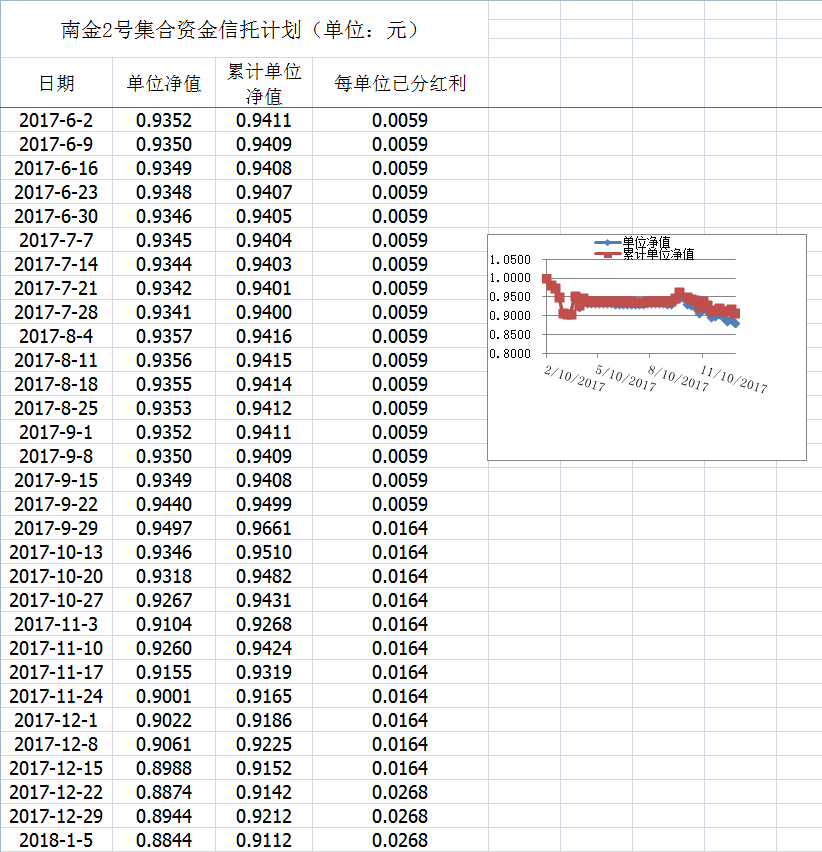 湖南信托-南金2号集合资金信托计划净值披露(2018年1月5日)