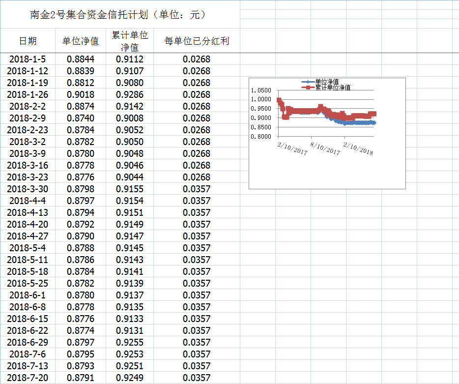 湖南信托-南金2号集合资金信托计划净值披露(2018年7月20日)