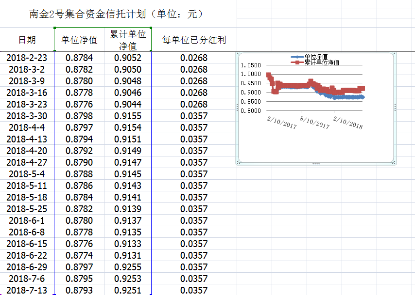 湖南信托-南金2号集合资金信托计划净值披露(2018年7月13日)