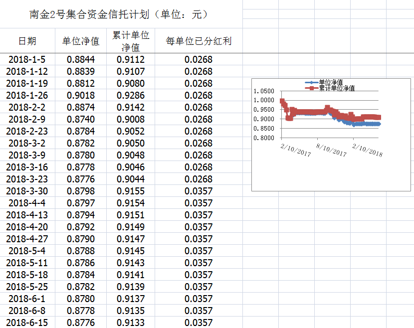 湖南信托-南金2号集合资金信托计划净值披露(2018年6月15日)