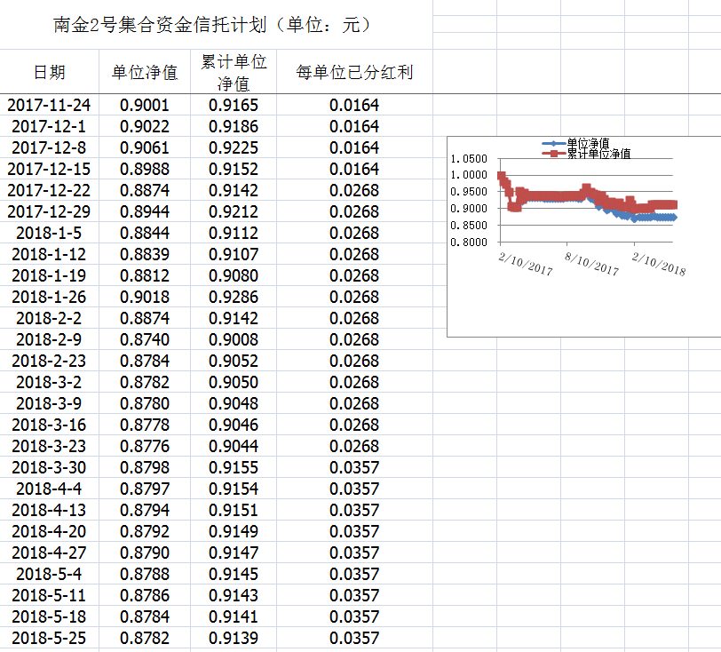 湖南信托-南金2号集合资金信托计划净值披露(2018年5月25日)