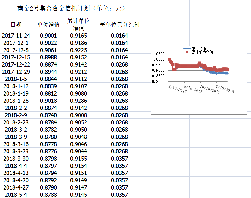 湖南信托-南金2号集合资金信托计划净值披露(2018年5月4日)