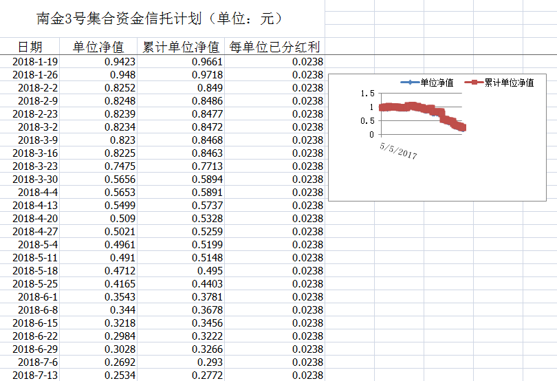 湖南信托-南金5号集合资金信托计划净值披露(2018年7月13日)