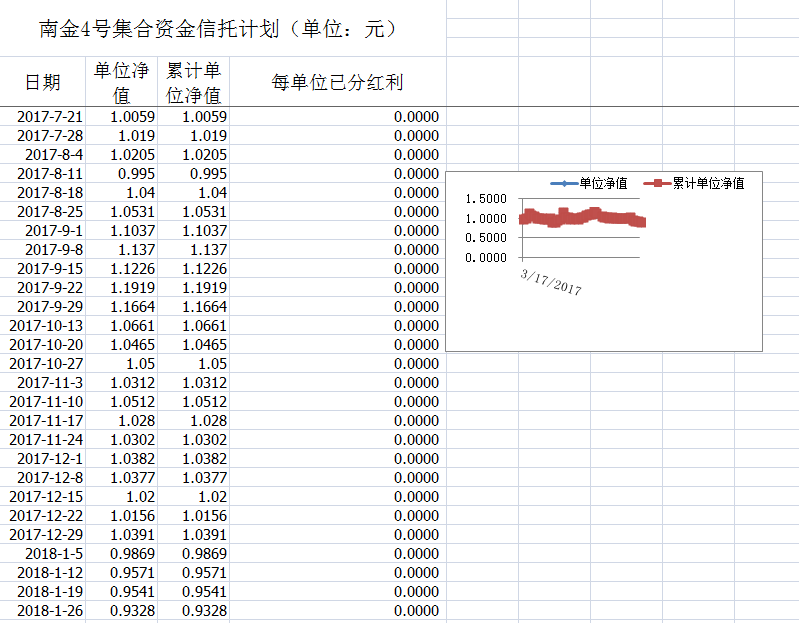 湖南信托-南金4号集合资金信托计划净值披露(2018年1月26日)