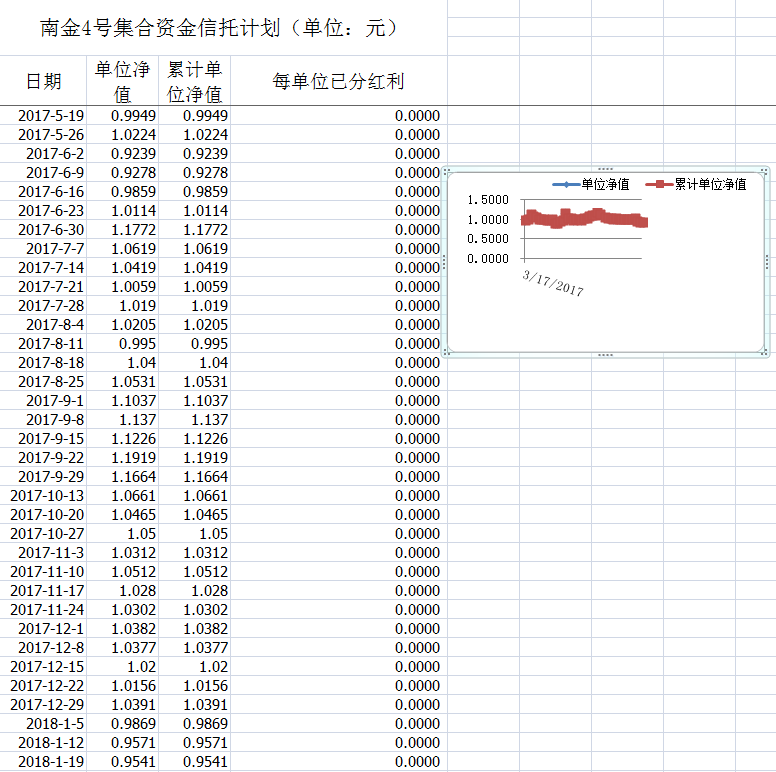 湖南信托-南金4号集合资金信托计划净值披露(2018年1月19日)