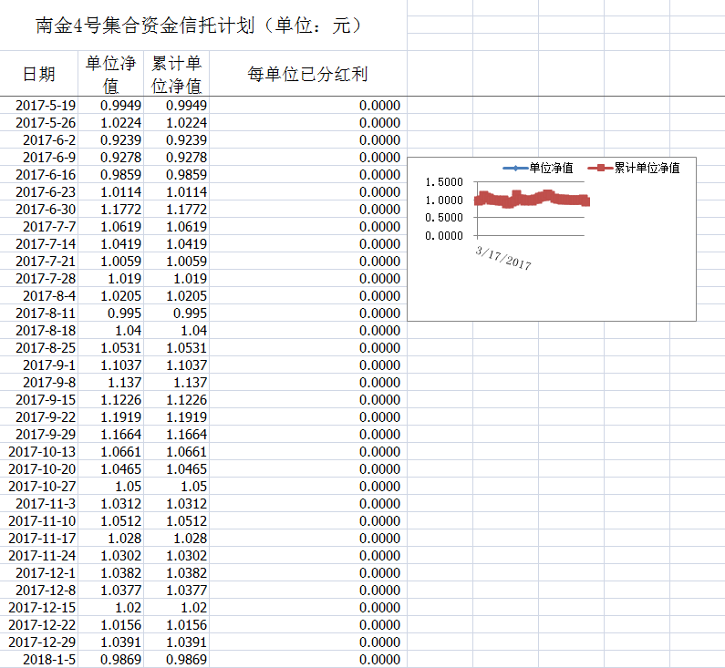 湖南信托-南金4号集合资金信托计划净值披露(2018年1月5日)