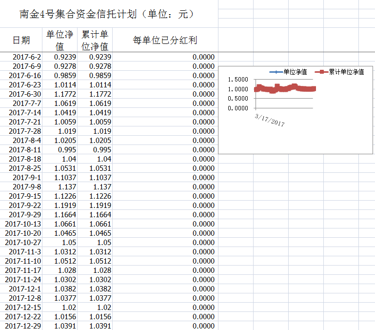 湖南信托-南金4号集合资金信托计划净值披露(2017年12月29日)
