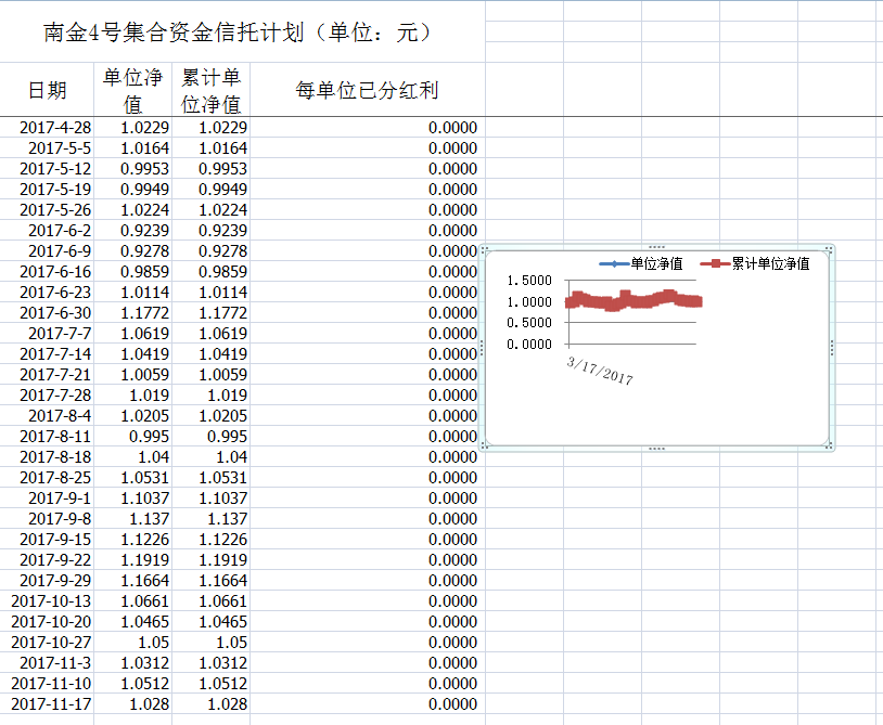 湖南信托-南金4号集合资金信托计划净值披露(2017年11月17日)