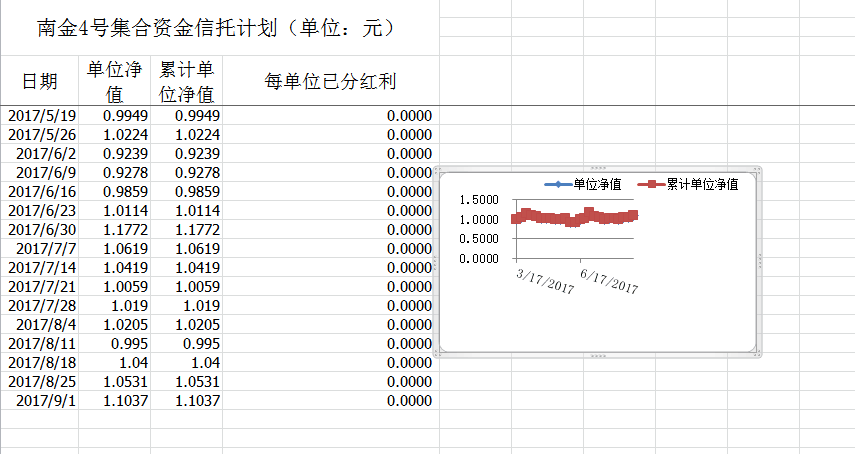 湖南信托-南金4号集合资金信托计划净值披露(2017年9月1日)