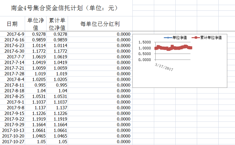 湖南信托-南金4号集合资金信托计划净值披露(2017年10月27日)