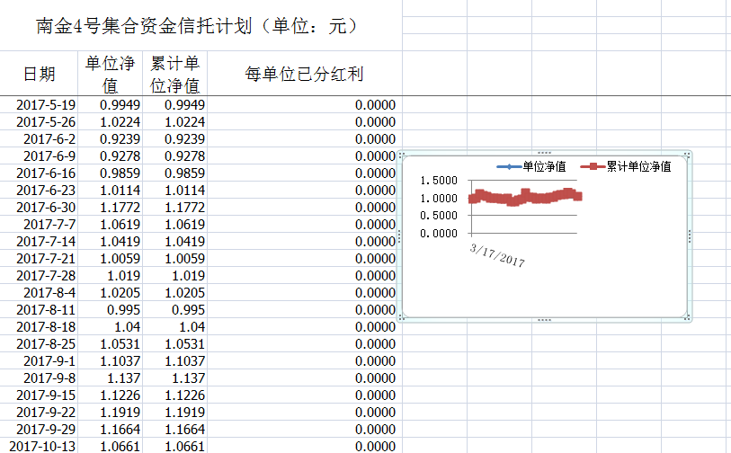 湖南信托-南金4号集合资金信托计划净值披露(2017年10月13日)