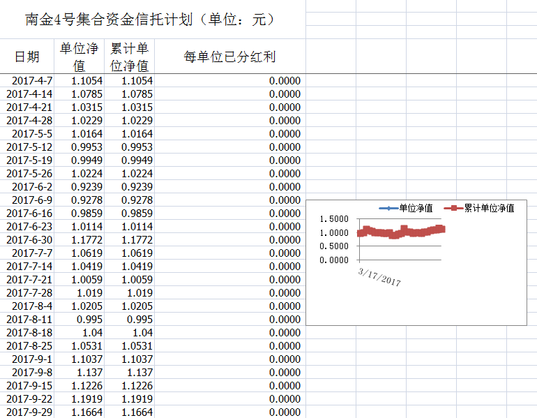 湖南信托-南金4号集合资金信托计划净值披露(2017年9月29日)