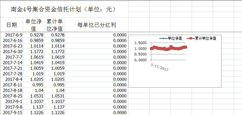 湖南信托-南金4号集合资金信托计划净值披露(2017年9月15日)