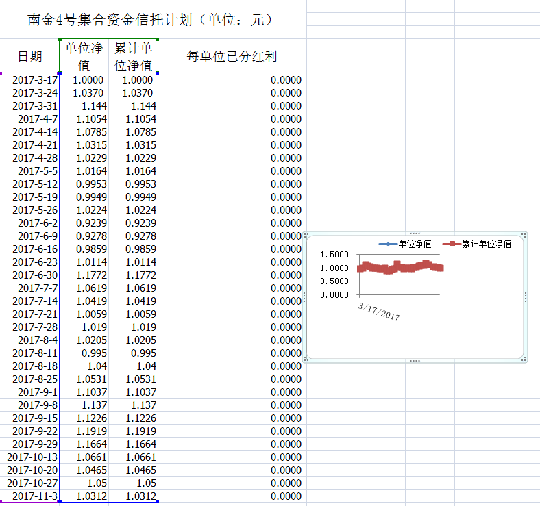 湖南信托-南金4号集合资金信托计划净值披露(2017年11月3日)