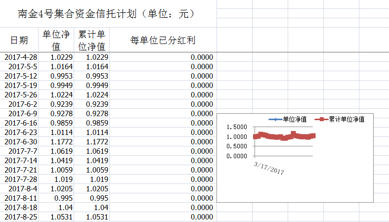 湖南信托-南金4号集合资金信托计划净值披露(2017年8月25日)