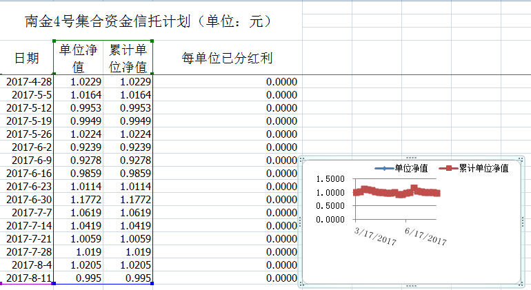 湖南信托-南金4号集合资金信托计划净值披露(2017年8月11日)