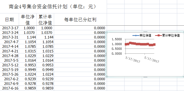 湖南信托-南金4号集合资金信托计划净值披露(2017年6月16日)