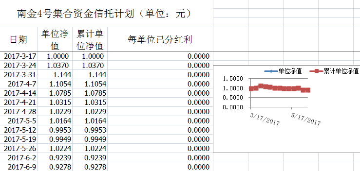 湖南信托-南金4号集合资金信托计划净值披露(2017年6月9日)