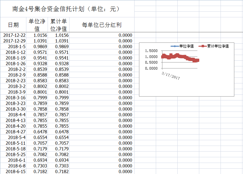 湖南信托-南金4号集合资金信托计划净值披露(2018年6月15日)